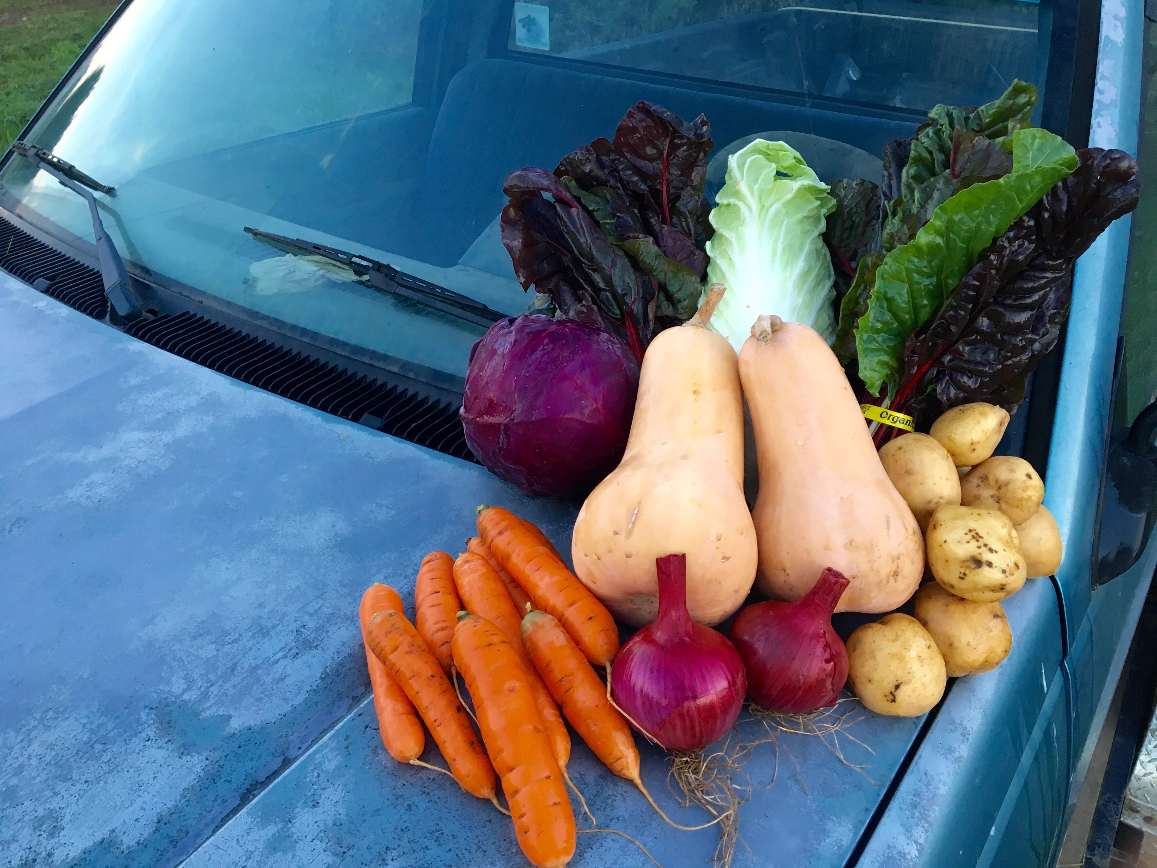 This week we are also featuring a new potato variety that we grew for the very first time this season. Its a nice yellow potato, and is billed as being resistant to just about every blight, disease, and malady that afflicts potatoes…and it seems to have lived up to its name. We really put it to the test and grew it in some tough fields that have been historically very challenging to grow in, and they did pretty well. In hindsight it would have been interesting to put some more standard varieties alongside of it in the same field as a control in this experiment, but oh well. We hope you like them.